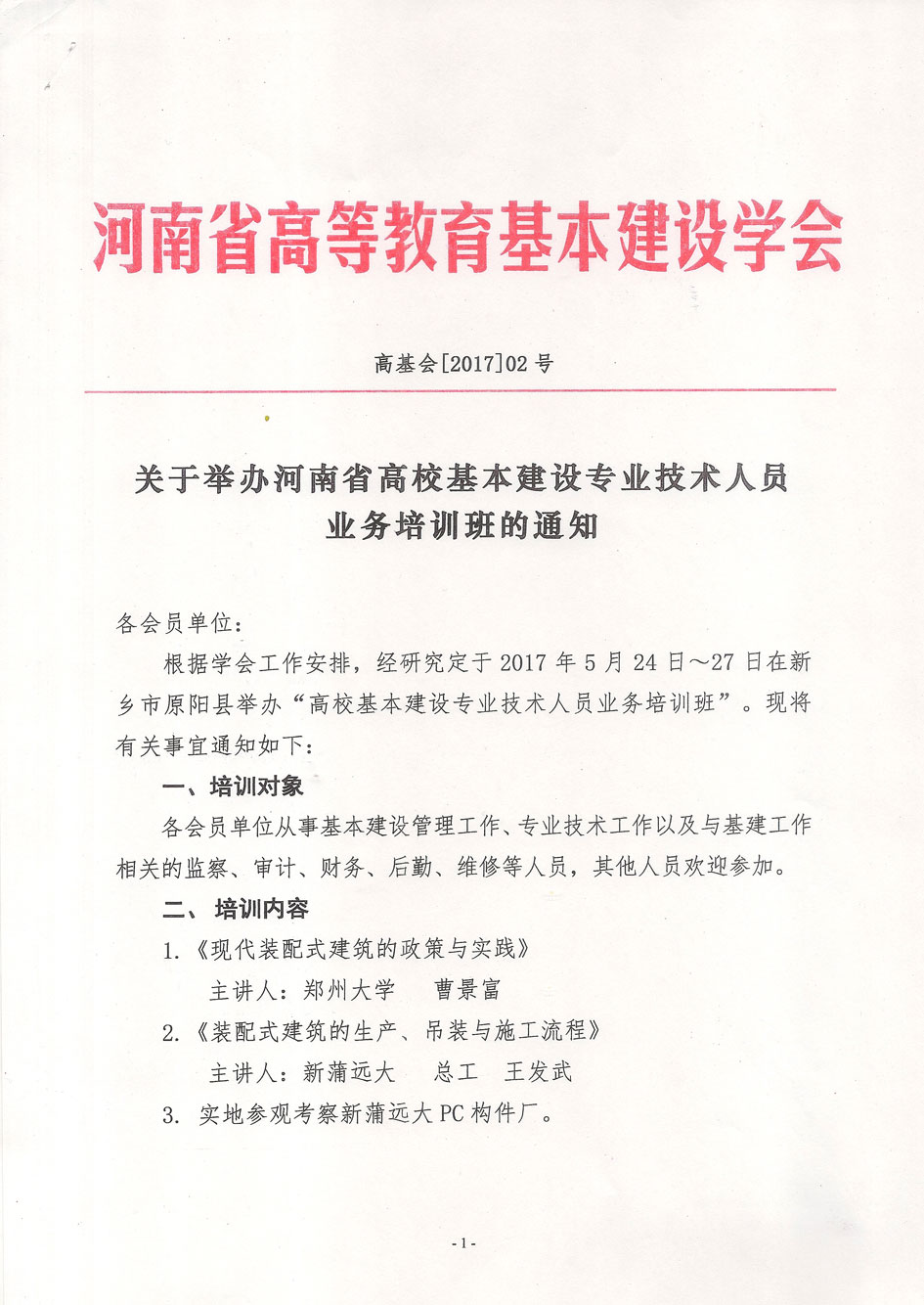 关于举办河南省高校基本建设专业技术人员业务培训的通知