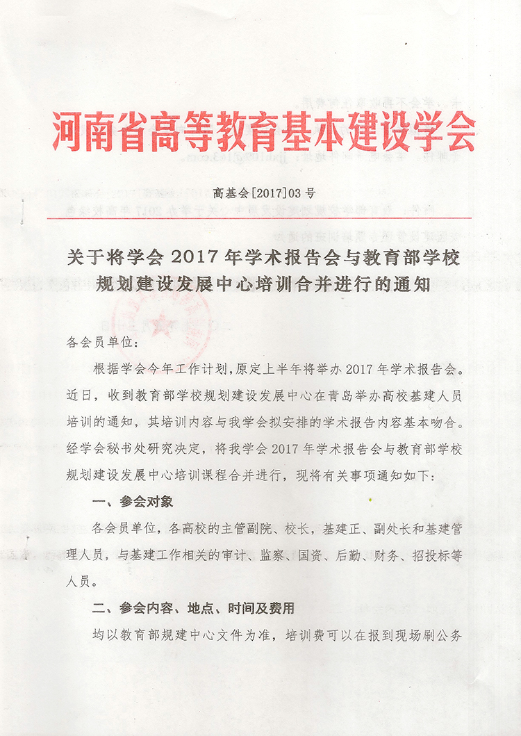 关于将学会2017年学术报告会与教育部学校规划建设发展中心培训合并进行的通知