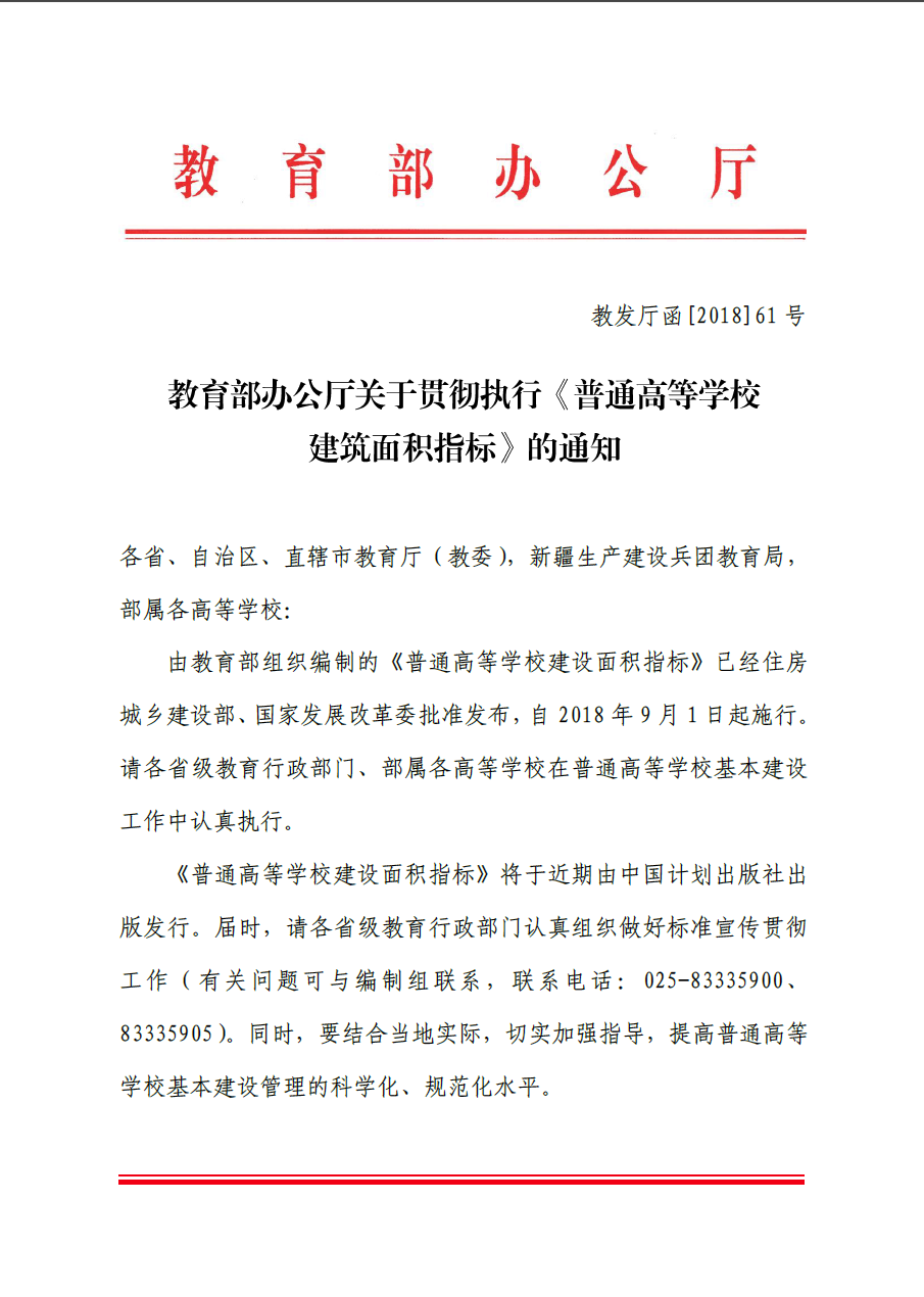 关于贯彻执行《普通高等学校建筑面积指标》的通知
