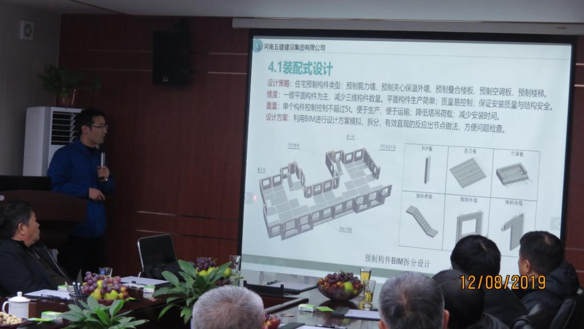 现场观摩后,专家们在会议室听取了分公司总工贾攀磊关于项目管理情况汇报。贾总从项目设计、施工等方面介绍了本项目装配式的管控重点、装配式设计方案、施工中的创新做法、质量管理标准化、科技示范及智慧工地应用等情况,并提出了基于本项目装配式的七点思考和建议。