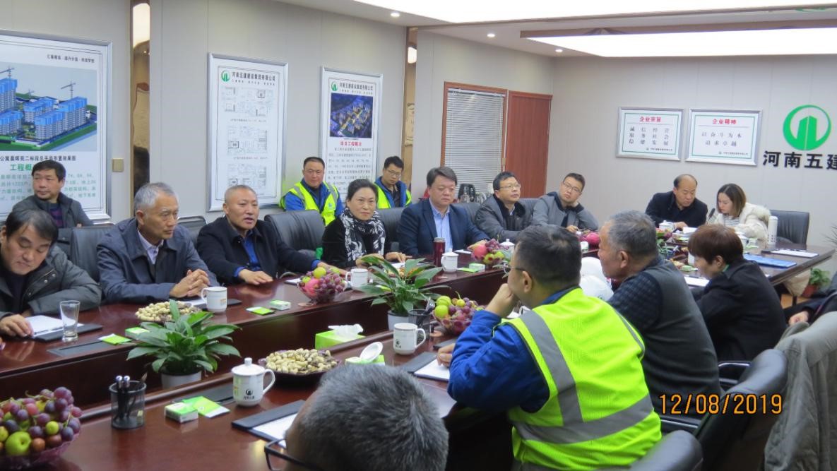 2019年12月8日下午,高校基建处郑西分会一行二十余人莅临河南五建集团七分公司省直青年人才公寓晨晖苑项目调研指导,分公司经理、技术总工、副总经理、项目经理及构件厂总经理等陪同本次调研活动。