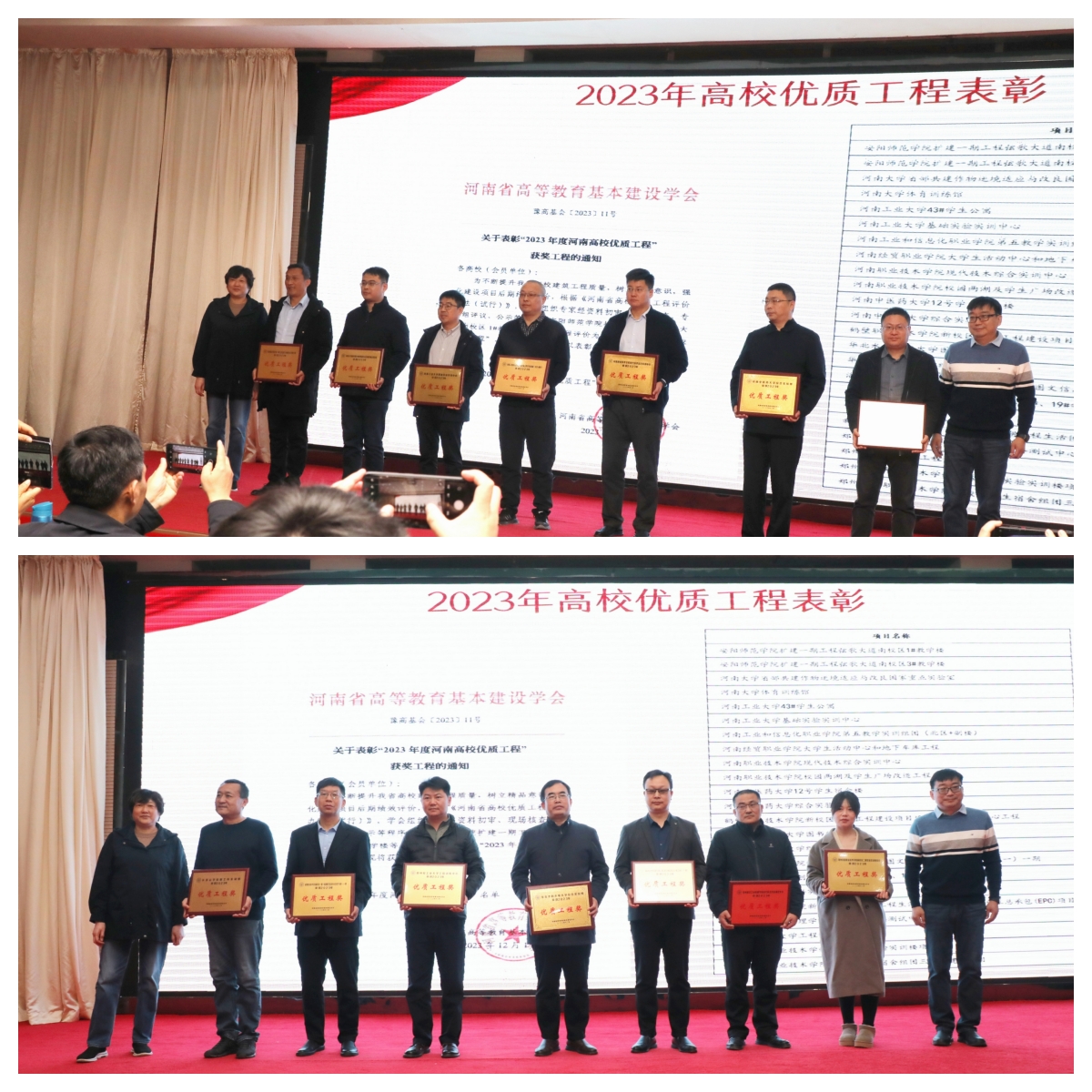会议由王华秘书长作2023年工作报告,并颁发2023年高校优质工程奖奖牌。会议邀请郑州大学综合设计研究院有限公司副总建筑师刘坦作《近期学校规划建筑设计体会》报告;邀请方大国际工程咨询股份有限公司副总工李志伦作《公共建筑工程管理思维变化》报告;邀请学会信息技术专业委员会主任徐珂作《基于高质量发展背景的工程项目创优管理》报告;邀请平顶山学院米立伟副校长介绍“尧山实验室”;邀请平顶山学院陶瓷学院梅国建院长作《从一色到万彩——唐鲁山花瓷与宋钧瓷的传承关系》报告。