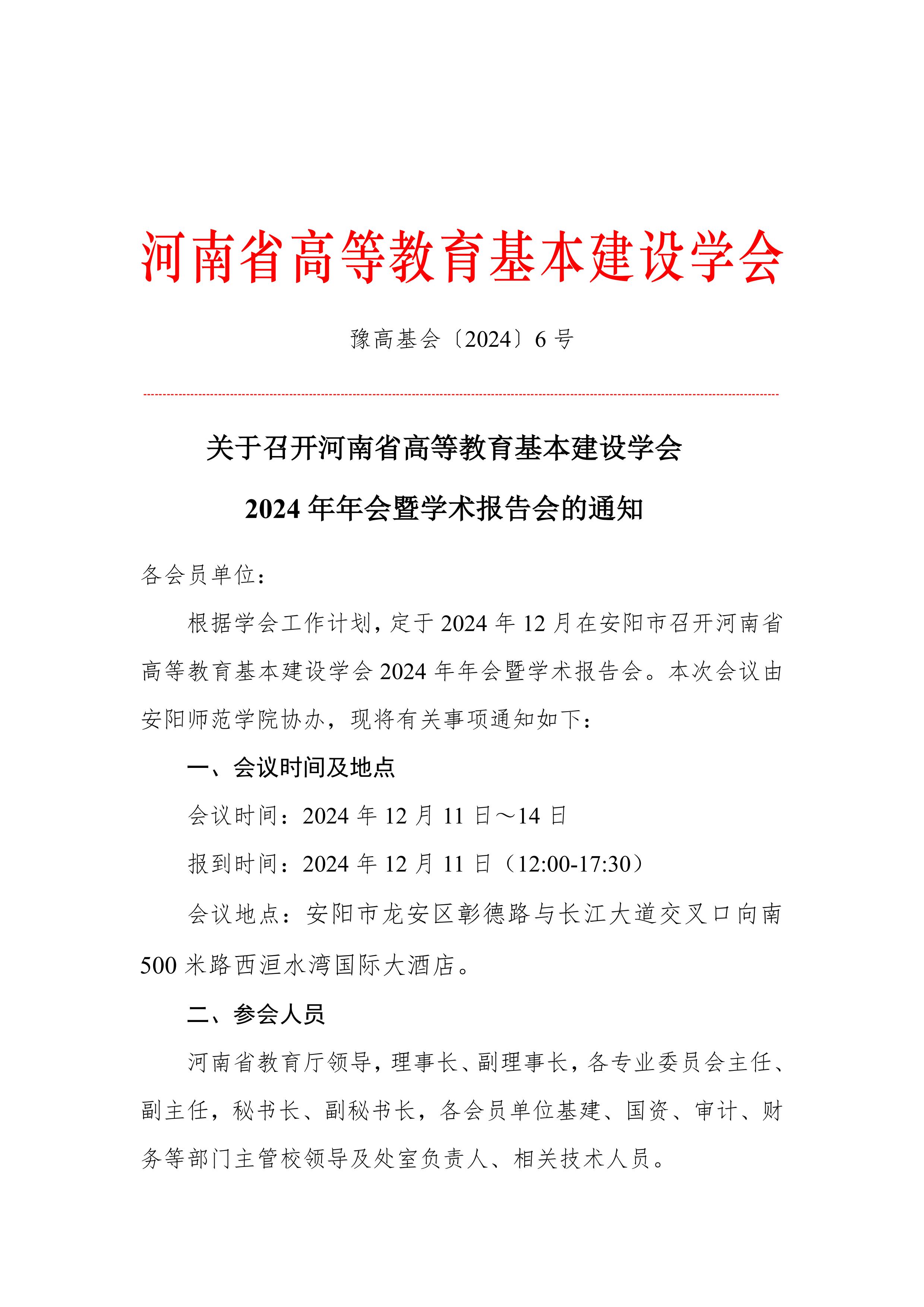 关于召开河南省高等教育基本建设学会2024年年会暨学术报告会的通知