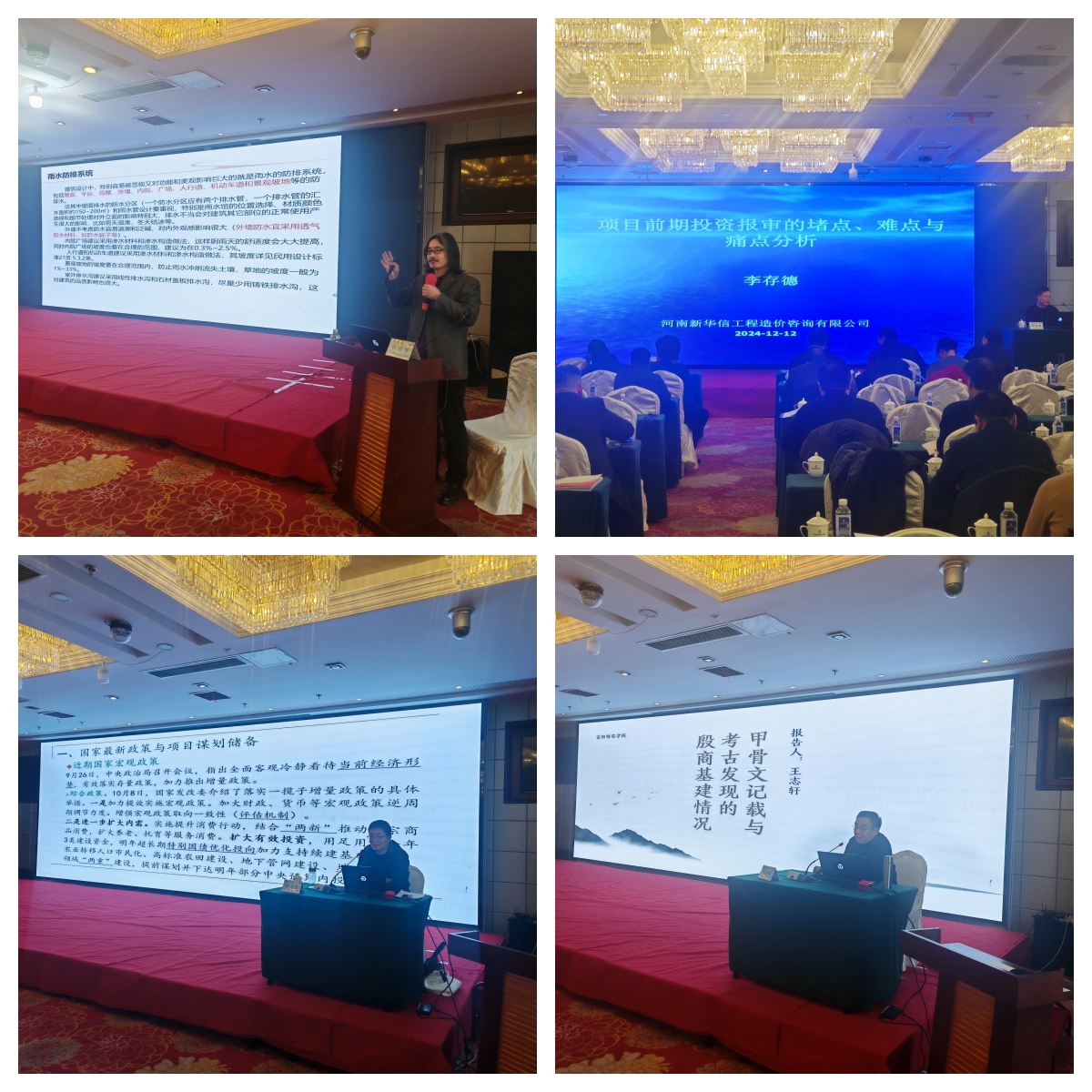 会议邀请了省发改委评估督导处处长郭宝华,省内资深经济类专家李存德、河南中豫工程咨询集团总建筑师刘清源、安阳师范学院历史学博士王志轩分别就《投资项目全流程管理》《项目前期报审堵点、难点与痛点分析》《高质量发展下的校园建筑细节设计》《甲骨文记载与考古发现的殷商基建情况》作了专题报告。