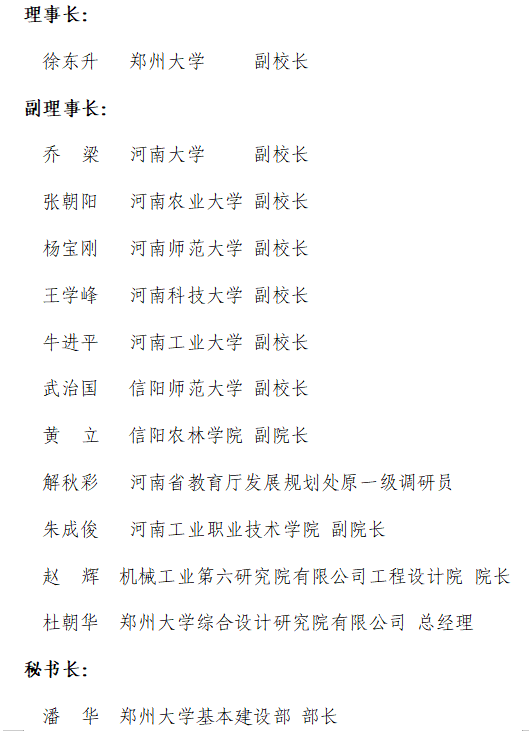河南省高等教育基本建设学会第八届理事会负责人拟推荐人选公示