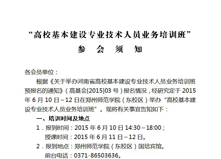 关于举办河南省高校基本建设专业技术人员业务培训班的通知